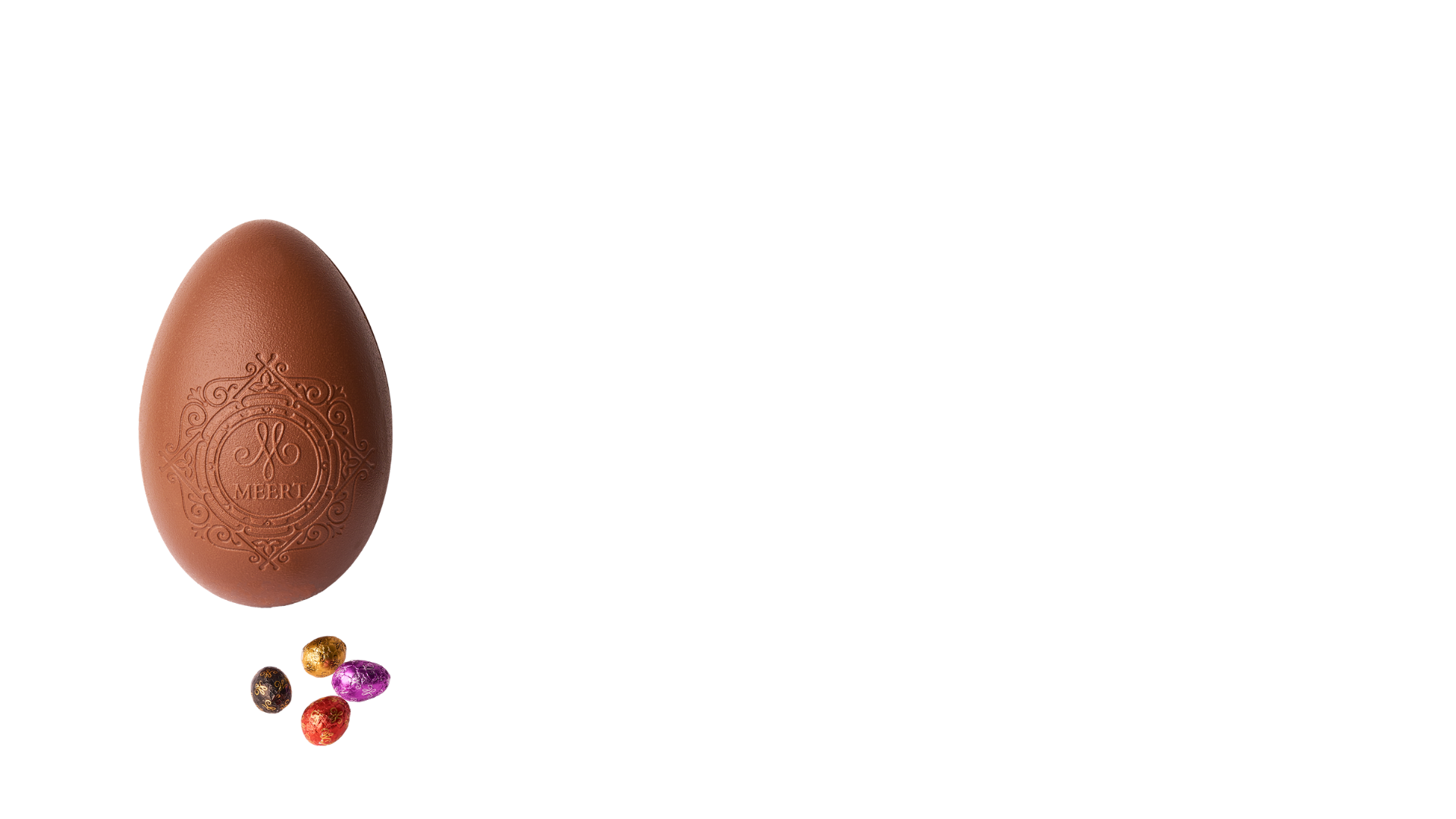 Milk chocolate Easter egg filled with little chocolate eggs (white chocolate, dark chocolate and milk chocolate).