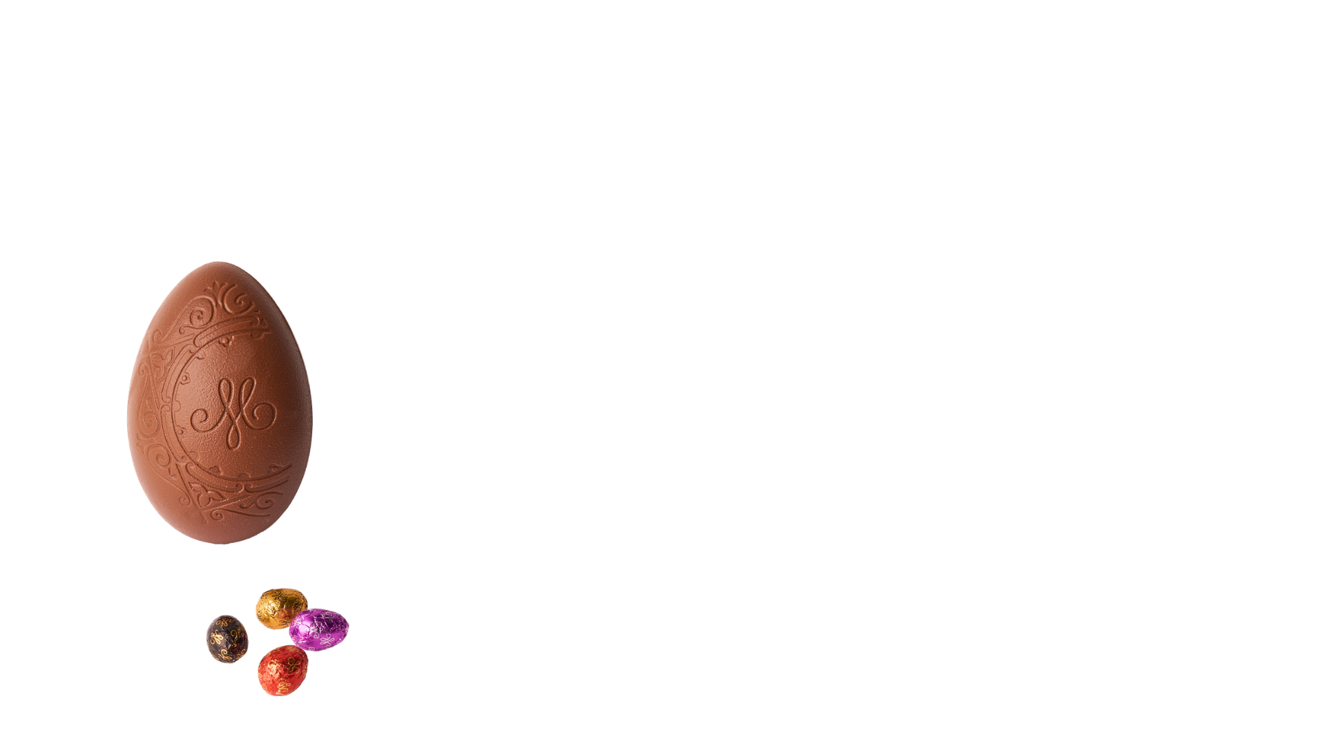 Milk chocolate Easter egg filled with little chocolate eggs (white chocolate, dark chocolate and milk chocolate).