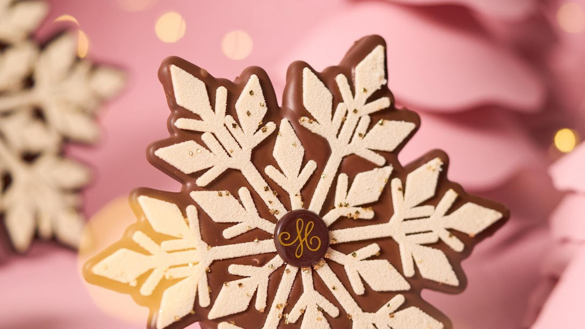 Flocon en chocolat noir, praliné feuilleté amandes et noisettes
